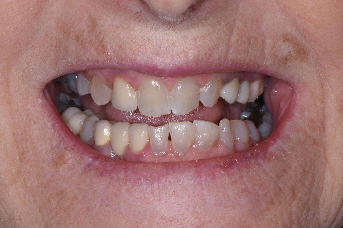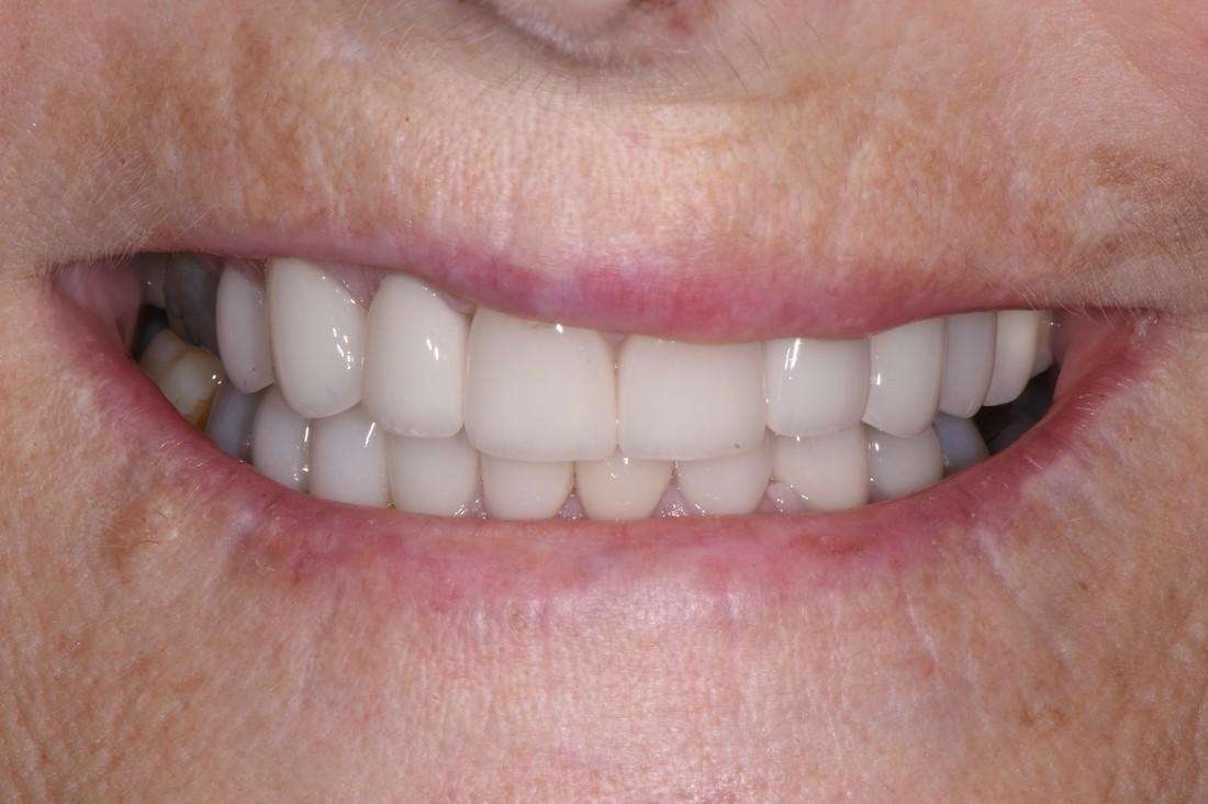 Upper and Lower Porcelain Crowns and New Lower Bridge
